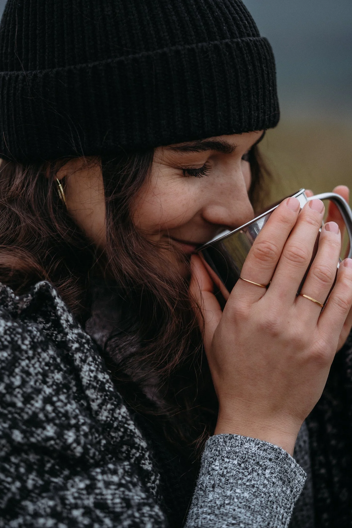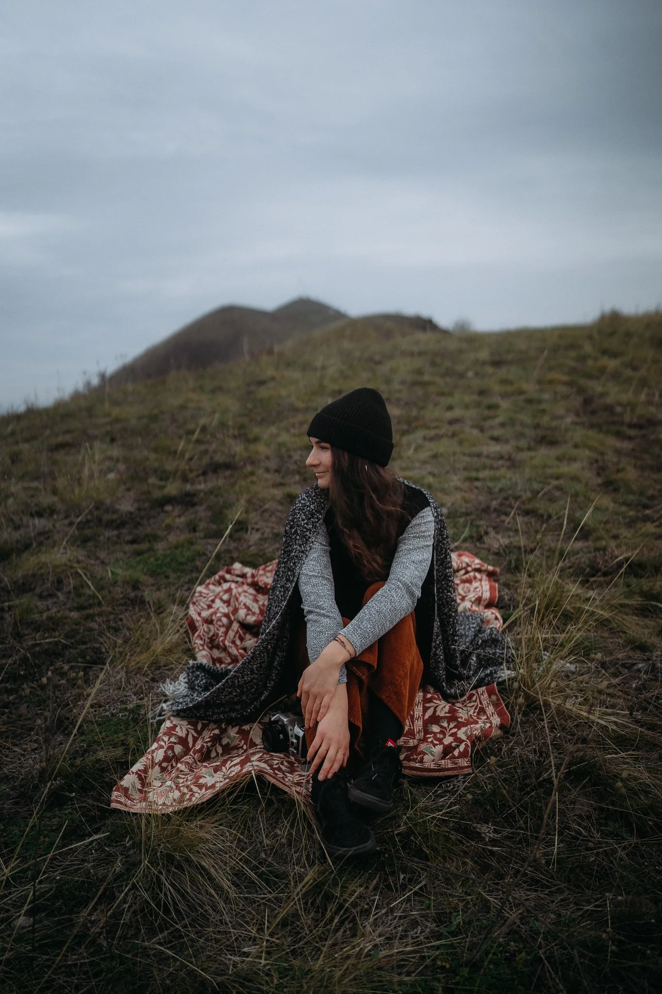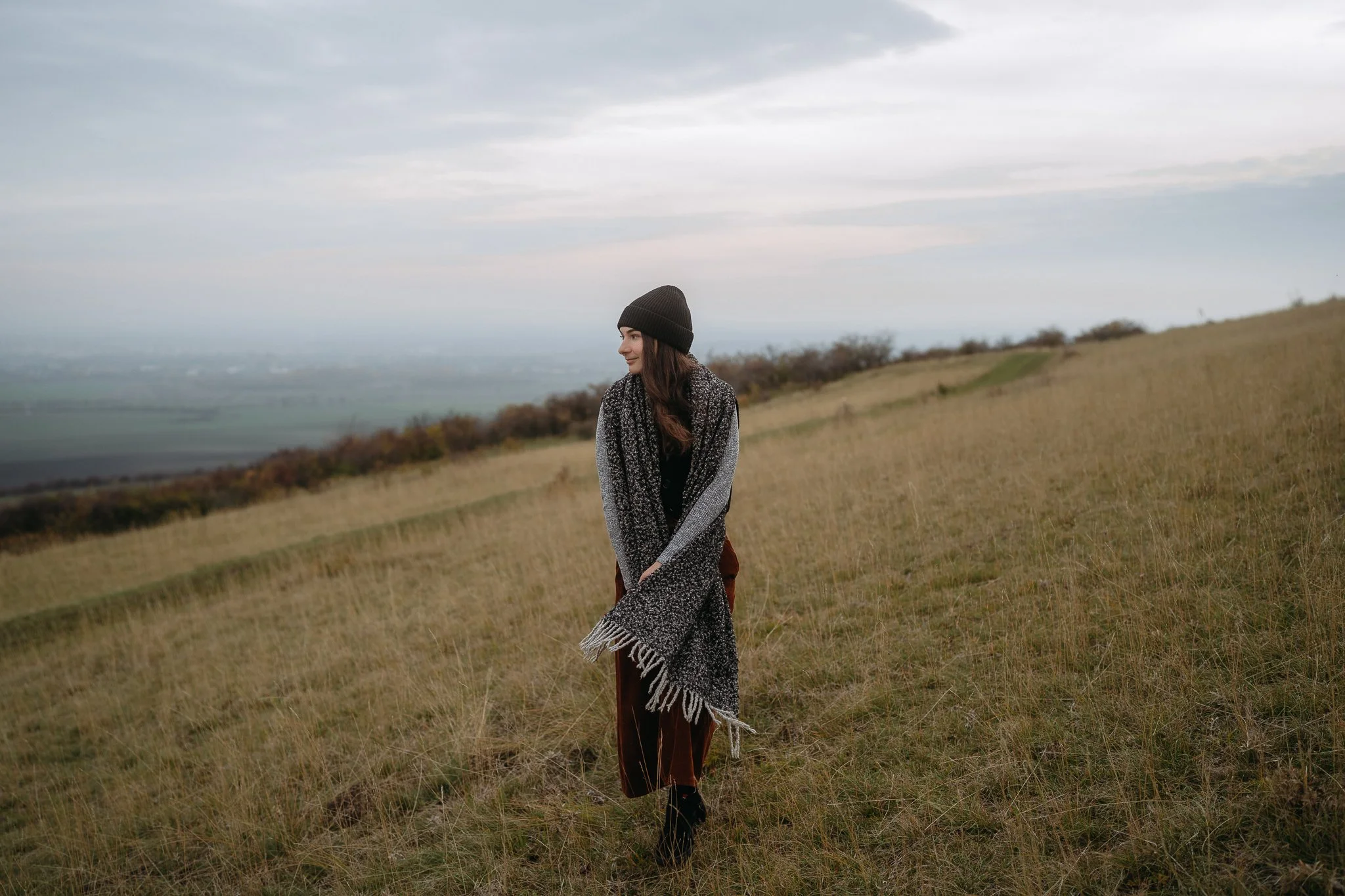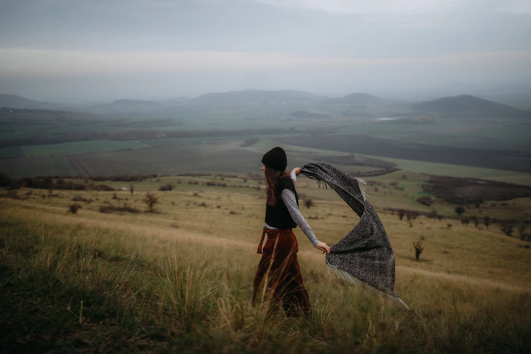 Přijela jsem za Zuzkou — fotografkou, která se tentokrát ocitla na druhé straně fotoaparátu. Sešly jsme se na kopci Raná v Českém středohoří, asi hodinu za Prahou. A i když se slunce ten den rozhodlo zůstat skryté, mělo to svou magii. Krajina působila skoro jako někde na Islandu. Syrová, tichá, nádherná.