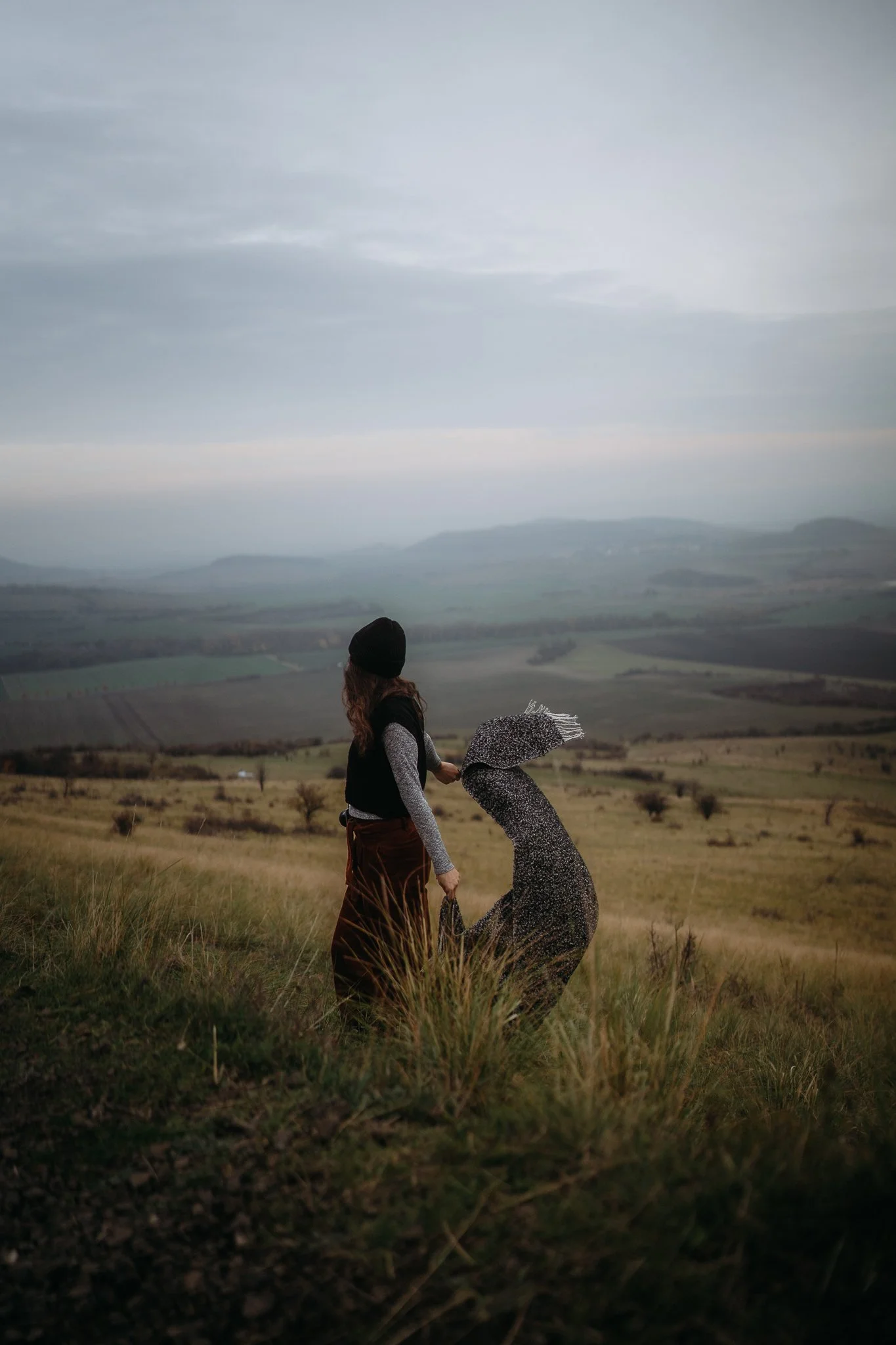 Zuzka chtěla na focení přijet za mnou do Prahy, ale když jsem zjistila, odkud je, navrhla jsem, že přijedu já za ní. Výhledy do kopcovité krajiny jsou mou srdcovkou a pokud to k vám sedí víc, moc ráda přijedu za vámi. Nebojte se mi napsat a navrhnout, abych za vámi přijela. Pokud mi to bude dávat smysl a bude to mému srdci blízké, nemám důvod nepřijet.