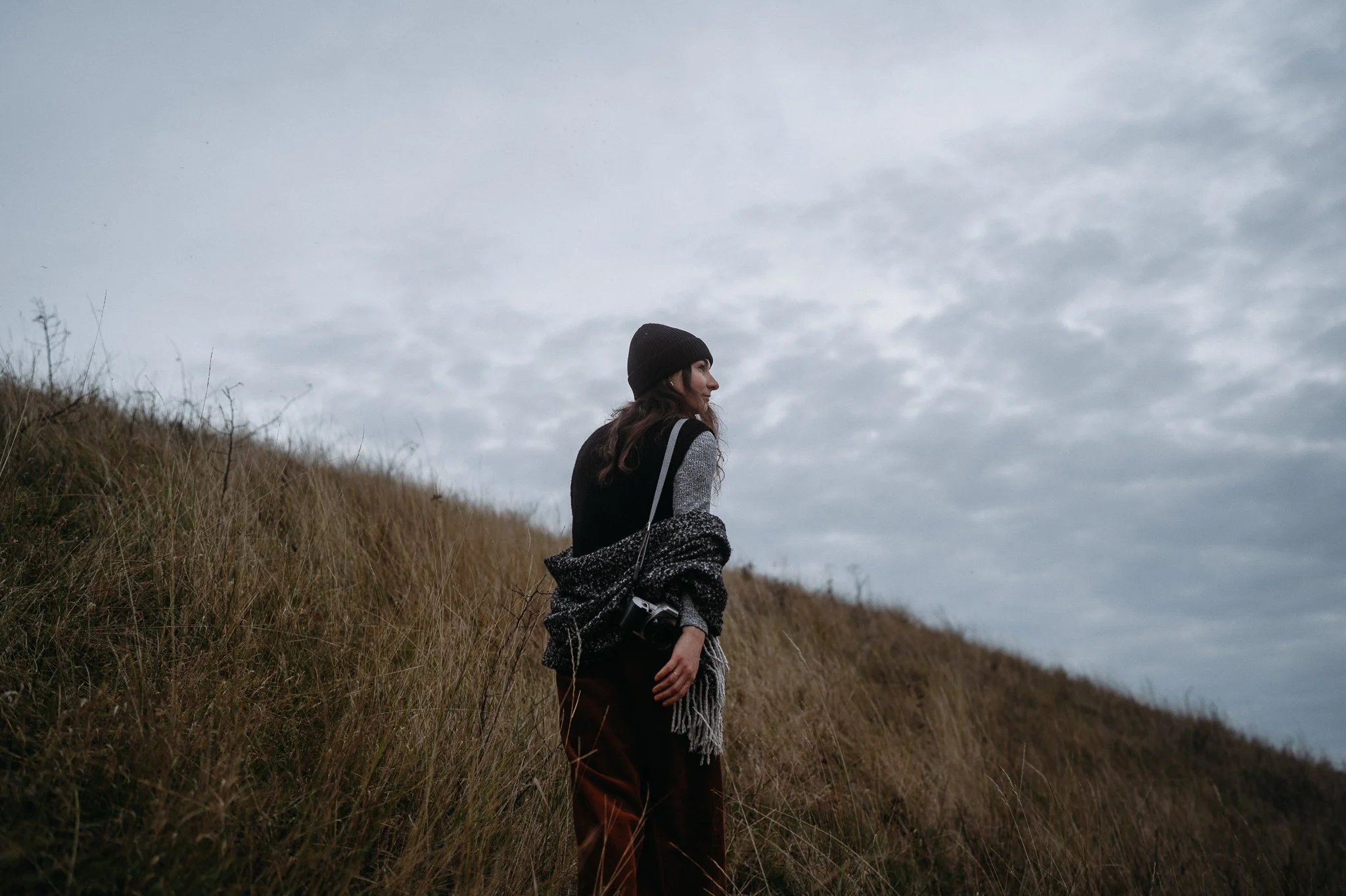 Podzimní počasí nám dopřálo svou jemnost — měkké světlo bez ostrých stínů, ideální pro portrét. Nebyly tam ani davy turistů… jen vítr, tráva a úžasné výhledy. Vše ostatní zmizelo.