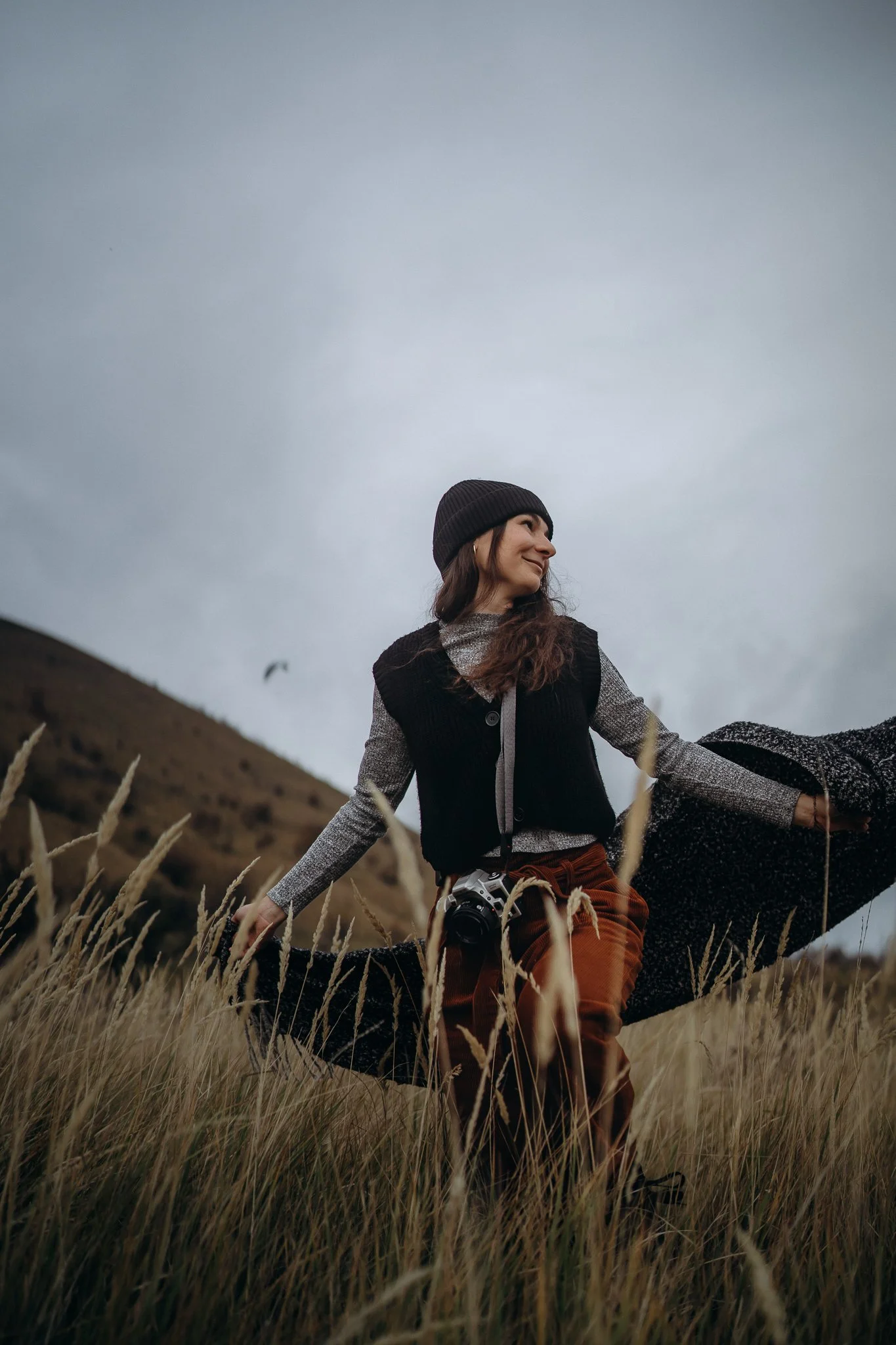 Šly jsme spolu na menší výšlap, povídaly si o tvorbě, životě, o tom, jak těžké je někdy fotit sebe sama. A já jsem měla čas sledovat přirozené momenty, nejen pózy. Bez spěchu, bez časového limitu, prostě dvě hodiny jen pro ni a její příběh. Miluju, když focení plyne tak přirozeně.